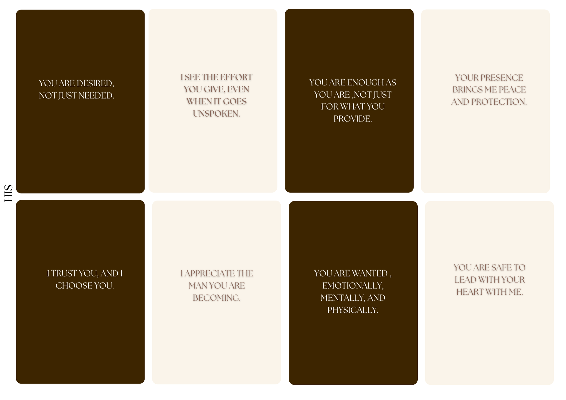 Through guided reflection, affirming words, and intentional play, this bundle supports couples in strengthening their emotional, mental, and physical connection in ways that feel real, sustainable, and aligned.